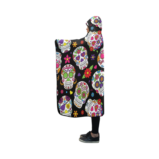 Custom Stylish Wearable Head Sugar Skull Black Hooded Blanket 50x40 Inch