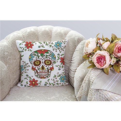 Day of The Dead Decorative Throw Pillow Cover Case,Colorful Skull with Floral Cotton Linen Outdoor Pillow cases Square Standard Cushion Covers For Sofa Couch Bed 18x18 inch Red Green