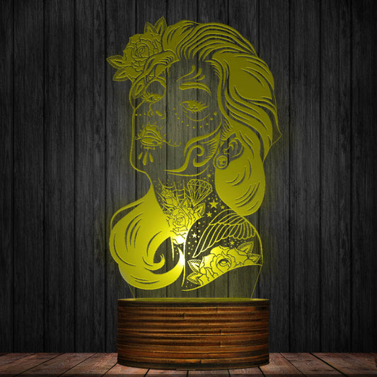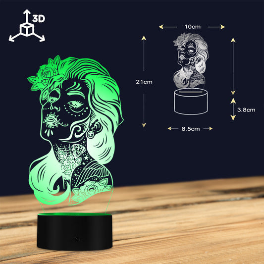 Day Of The Dead Color Change Night Light Girl Sugar Skull LED Table Lamp
