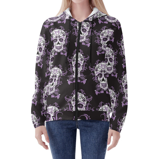 Day of the dead sugar skull calavears Women's Lightweight Zipper Jumper Sweatshirt Hoodie