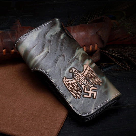 Great Handcraft Skull Designer Hand Carved Male Hasp Card Wallet