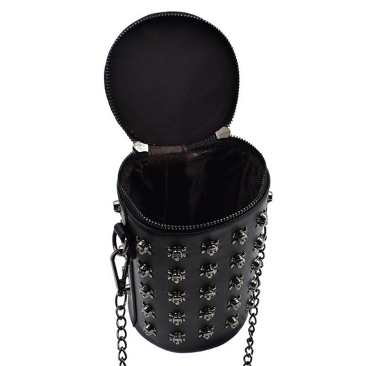 Punk Style Women Bucket Shoulder Bag Gothic Skull Punk Rivets Bags PU Leather Metal Chain Crossbody Messenger Bag