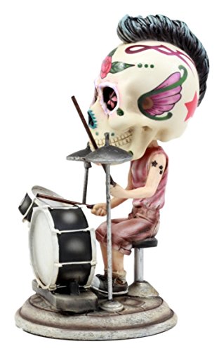 Ebros Gift Day Of The Dead Tattoo Skeleton Rock Drummer Bobblehead Figurine 6.5"L Halloween Statue Decor
