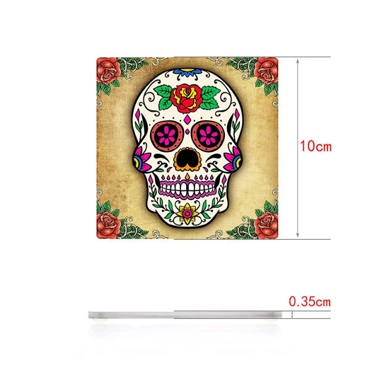 Set of 6 Floral Sugar Skull Acrylic Table Coasters Candy Skull Day of the Dead