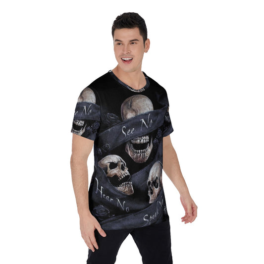 No see no hear no speak evils Men's O-Neck T-Shirt, Gothic skull evils shirt, halloween tshirt