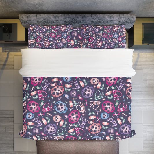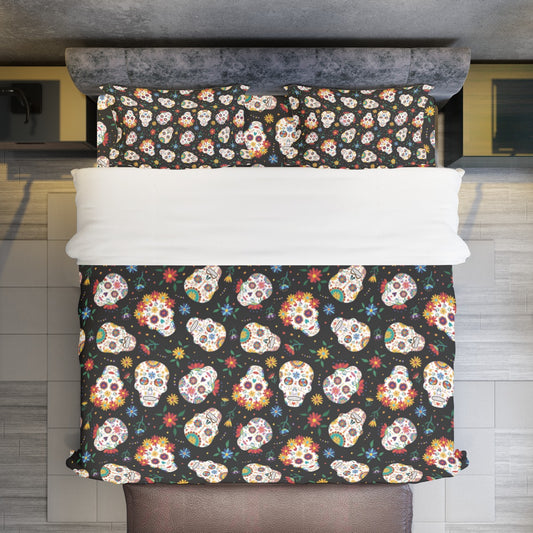 Floral skull comforter set, mexico duvet cover queen king, mexican skull duvet cover queen king, candy skull duvet cover set, cinco de mayo