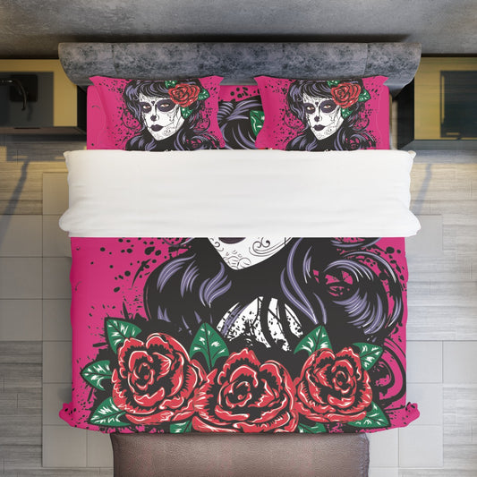 Sugar skull girl pillow cover, dia de los muertos skull bedding, cinco de mayo skull duvet cover set, calaveras skull comforter set, floral