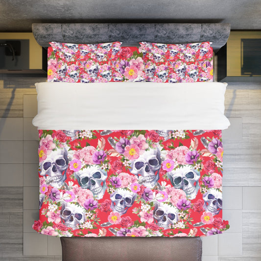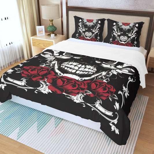 4pcs Rose skull bedding set, Gothic skeleton duvet cover set, Halloween skull bedding set, Grim reaper skull duvet cover skull pillow covers