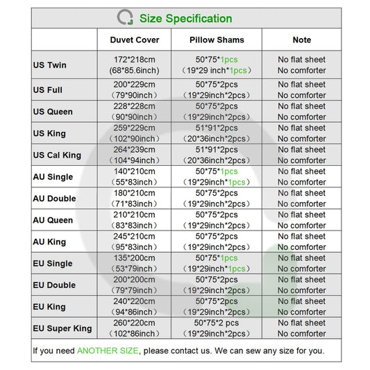 • Bedding/Duvet covers