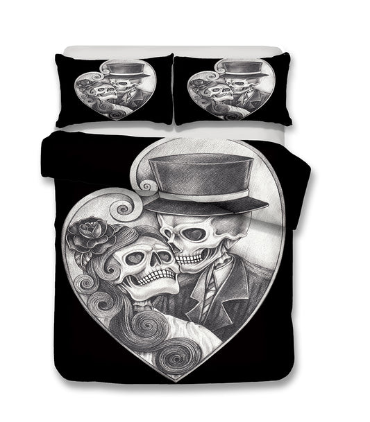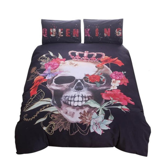 Black Skull Printed Duvet Cover Set 3Pcs Single Queen King Bedclothes Bed Linen Bedding Sets