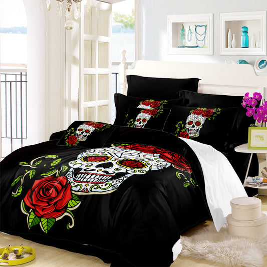 New Rose Skull Bedding Set Lady Sugar Skull Duvet Cover Set Pillowcase Black White Bedclothes Bedroom Bed Set Home Textile