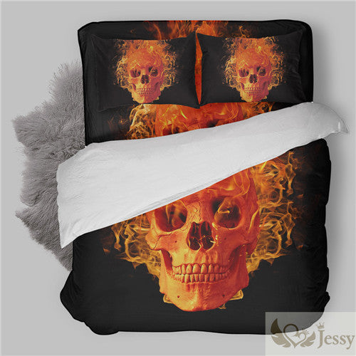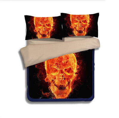 Halloween Bedding Set Polyester Fire Skeleton Printed Bedding Fire Skulls Bedding Set