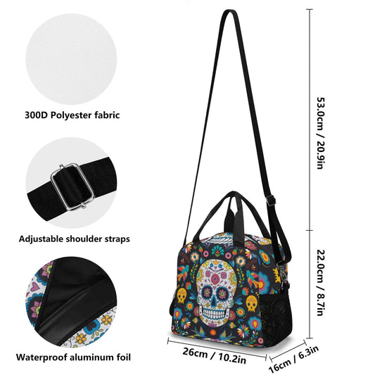 Sugar skull day of the dead Halloween gothic Detachable Leather Lunch Bag