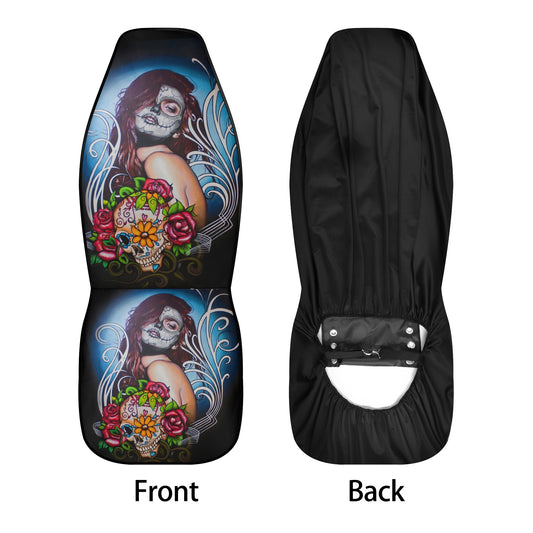 Dia de los muertos skull mat for vehicles, sugar skull car tool, candy skull seat cover for car, calaveras skull front and back car seat cov