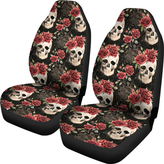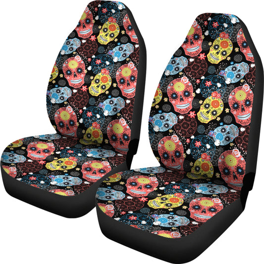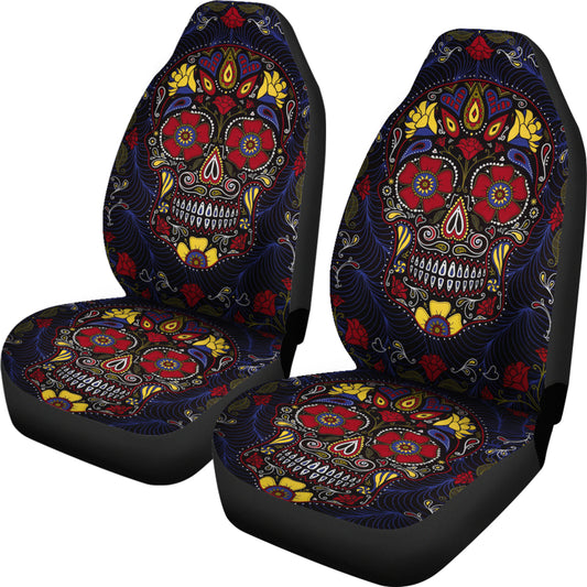 Set 2 pcs Floral sugar skull day of the dead skull car seat covers