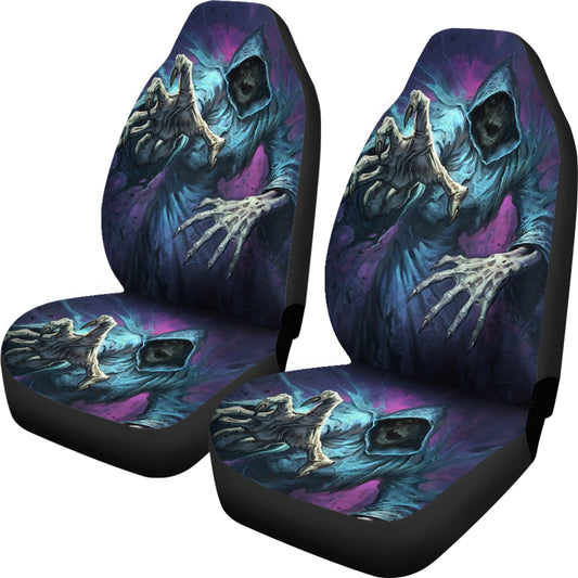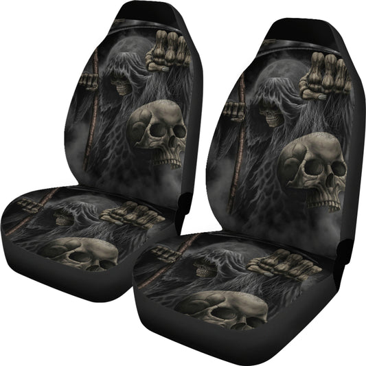Set of 2 pcs - Skull Gothic Horror Flaming Fire Halloween skull car seat covers