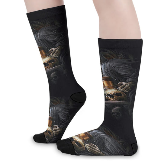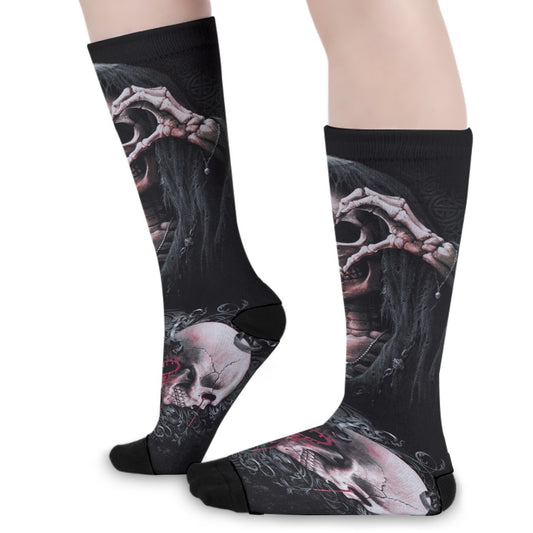 Grim reaper skull Unisex Long Socks, Halloween skull long socks, skeleton socks