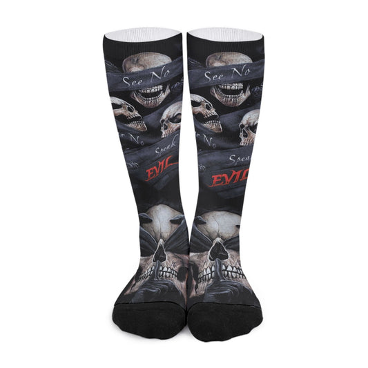 No see no hear no speak evils skull Halloween Unisex Long Socks