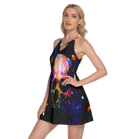 Halloween Grim reaper Skeleton Horror Women's Round Neck Above Knee Dress