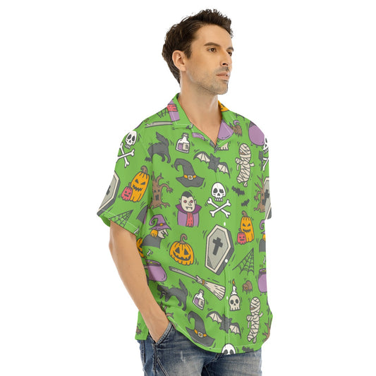 Halloween Day of the dead Men's Hawaiian Shirt With Button Closure Calavera