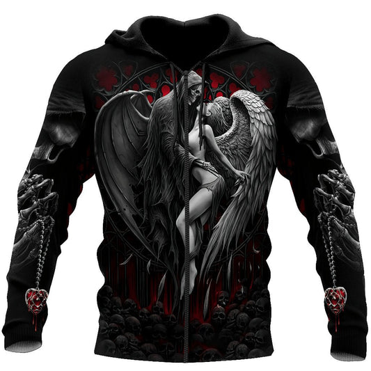Reaper Skull Angel And Demon 3D All Over Printed Autumn Men Hoodies Unisex Casual Zip Pullover Streetwear sudadera hombre