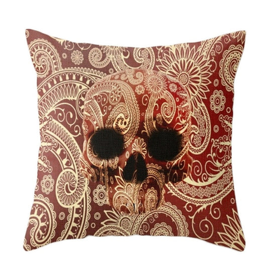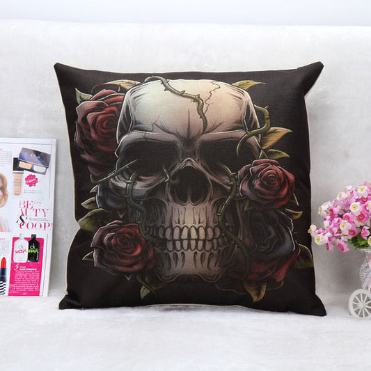 Linen Decorative Cushion Covers Vintage Skull Throw Pillow Cases for Sofa