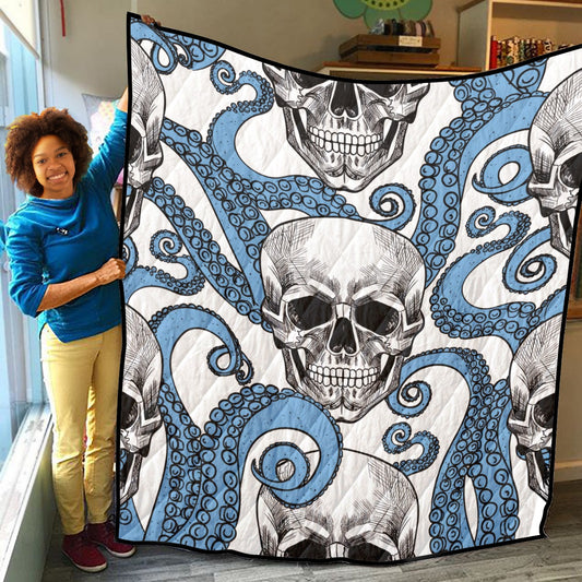 Gothic skull skeleton Halloween Household Lightweight & Breathable Quilt, Horror skull blanket