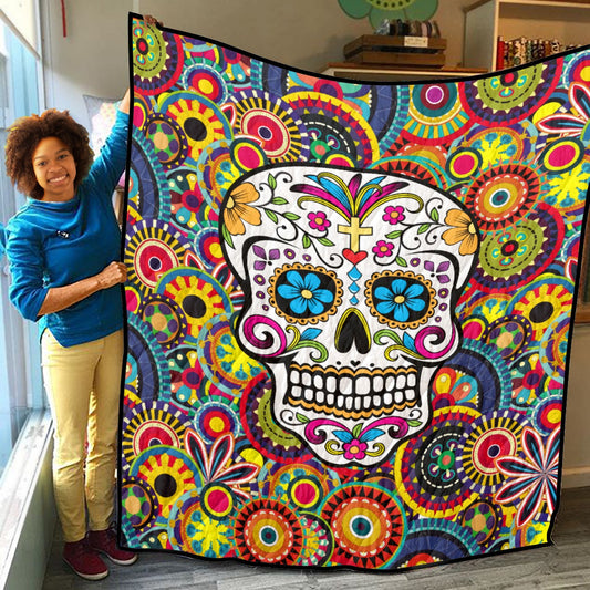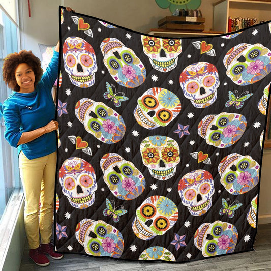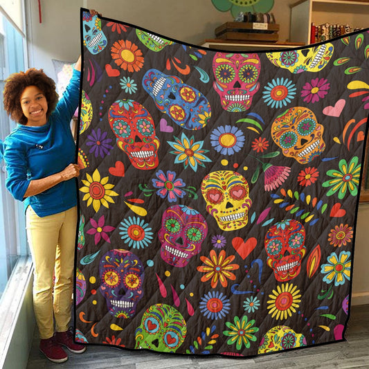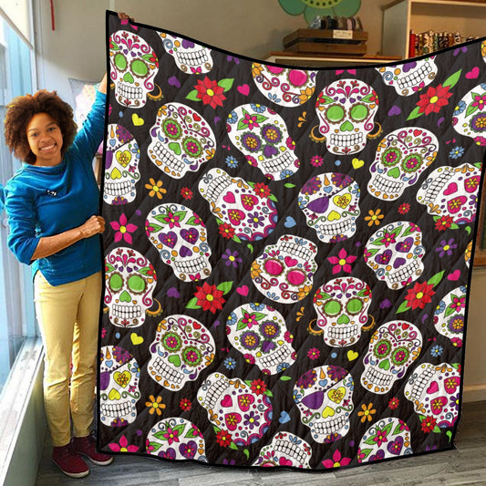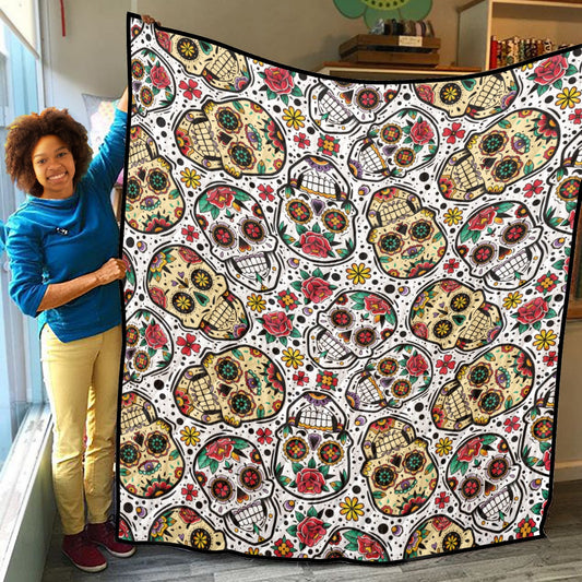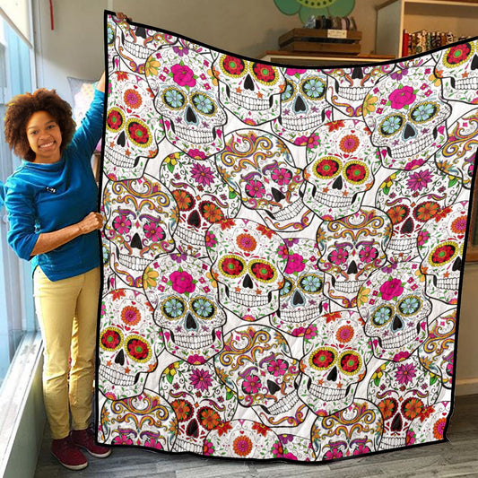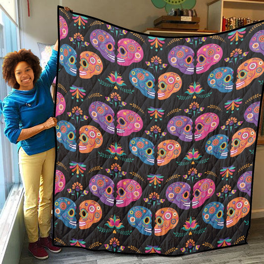 Day of the dead Sugar skull pattern Calaveras Mexican skull Household Lightweight & Breathable Quilt