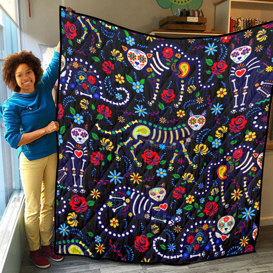 Cat sugar skull day of the dead Household Lightweight & Breathable Quilt