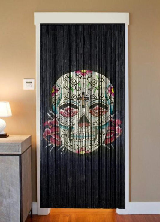 Bamboo Beaded Curtain Hand Painted-Sugar Skull