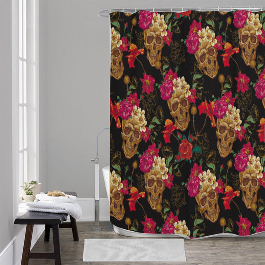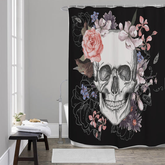 Floral sugar skull Shower Curtains, Day of the dead skull shower curtains, gothic skeleton curtain