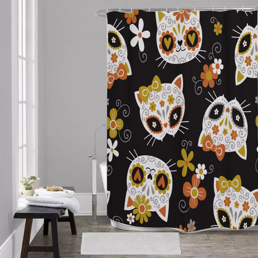 Sugar skull cat Shower Curtains 150(gsm)