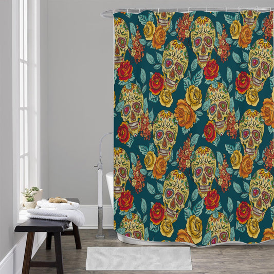 Sugar Skull Day of The Dead Shower Curtain Mexican Home Bath Decor