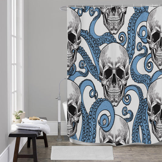 Gothic skull halloween skeleton Shower Curtains 150(gsm), Grim reaper horror skull shower curtain