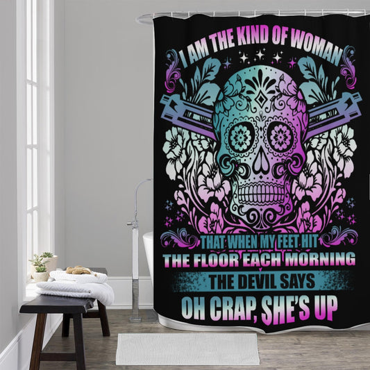 I am the kind of woman that when my feet hit the floor Shower Curtains