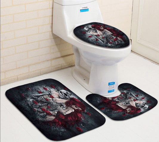 Sexy Teenage Girl Hugging Skull Shower Curtain Set Skeleton Lover Bathtub