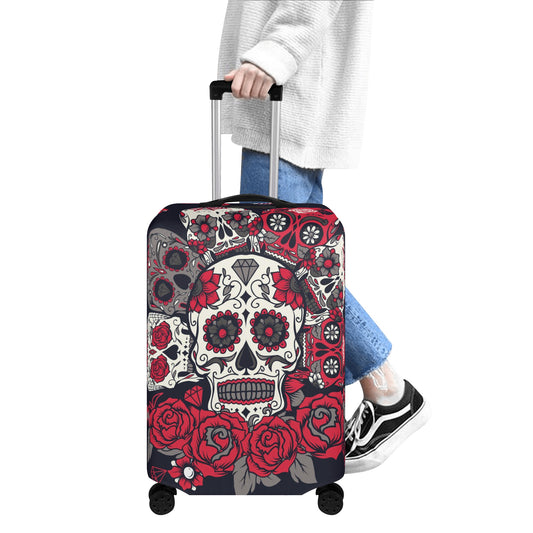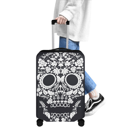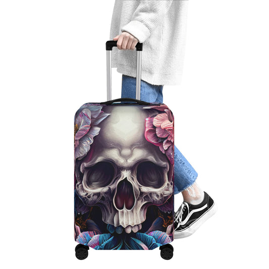 Flower skull luggage cover, skeleton suitcase tag, christmas skull suitcase protector, punisher skull luggage tag, halloween suitcase cover,