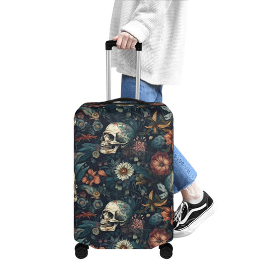 Goth luggage tag, goth luggage tag, christmas skull travel bag cover, floral skull luggage tag, halloween luggage protector, flower skull tr Luggage Cover