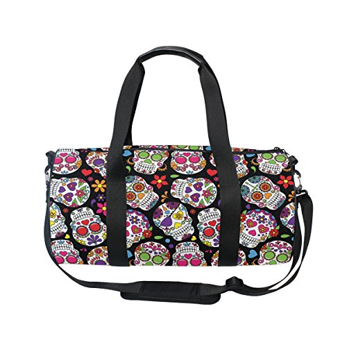 Day Of The Dead Sugar Skull Travel Duffle Bag Sports Luggage with Backpack Tote Gym Bag for Man and Women