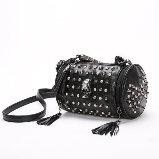 women black tassel bag classic flap bag PU leather small shoulder crossbody bags for women Rivets Skull clutch handbag