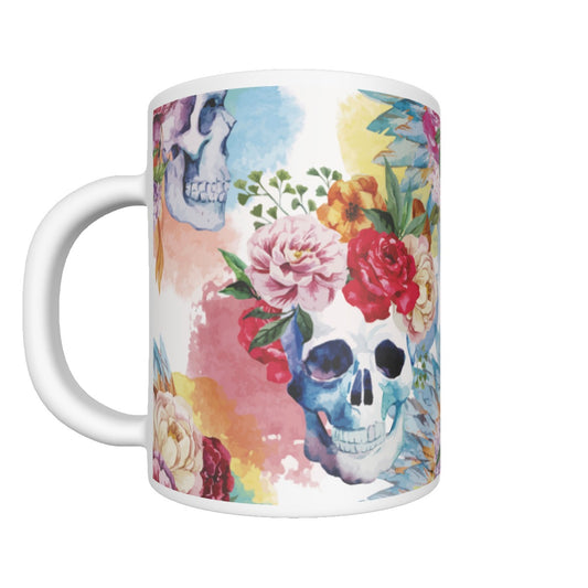 Floral skull Ceramics mug, gothic rose skull day of the dead tumbler cup mug