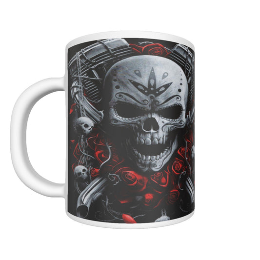 Skull Motorcycle Ceramics mug, Skull biker tumbler mug