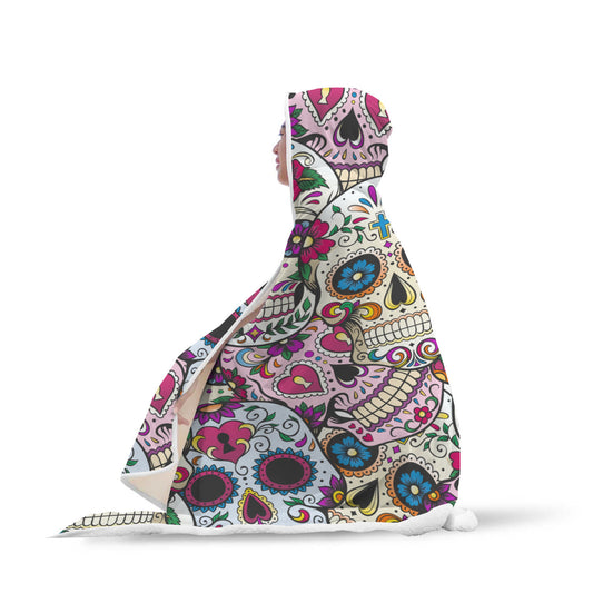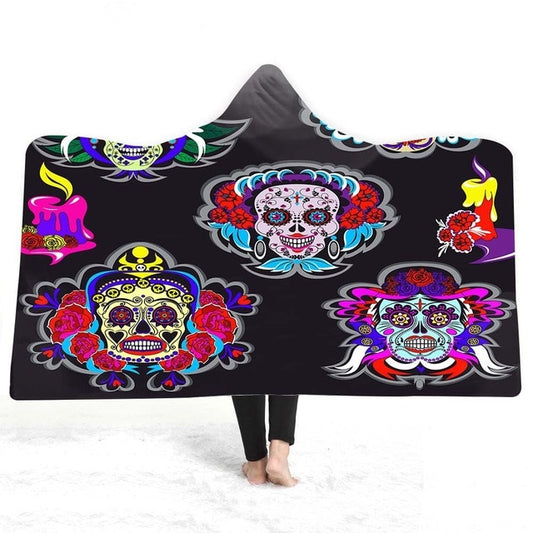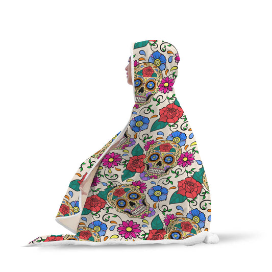 Sugar Skull Flower Hooded Blanket for Adults Kids