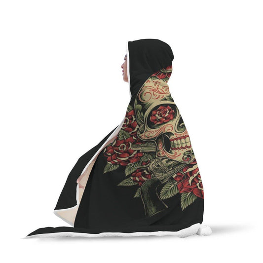 Custom Stylish Wearable Head Sugar Skull Black Hooded Blanket 50x40 Inch