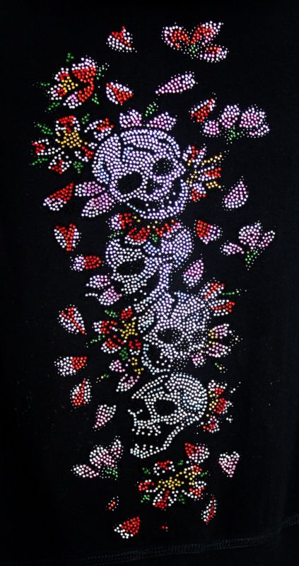 JUNIOR LIGHT HOODIE SKULLS BONES RHINESTONE TOP SKULL NEW S - 2XL