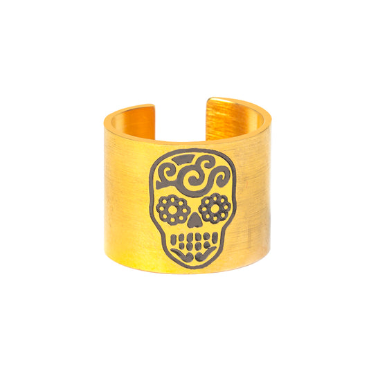 Stainless Steel men's Gothic gold Carving kapala Skull Ring Biker Hiphop rock Jewelry
