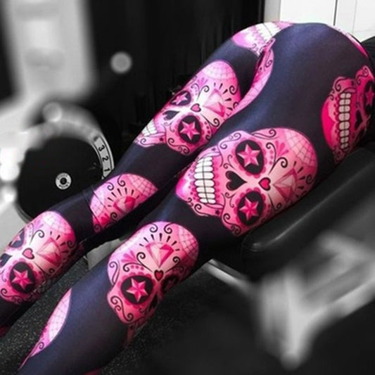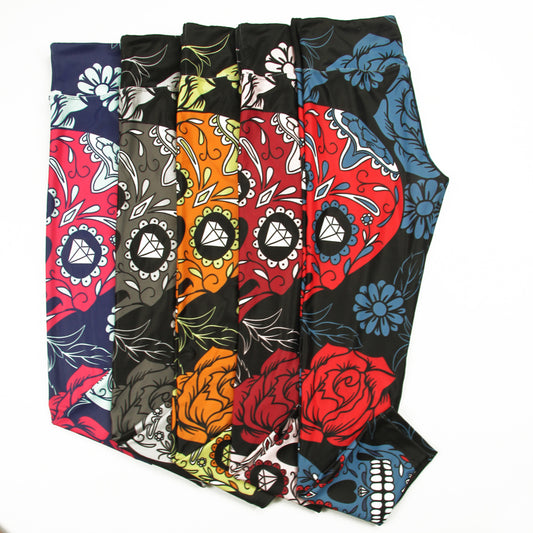 Sugar Skull Print Leggings Slim Stretchy Trousers Women's Skinny Pants Gracious