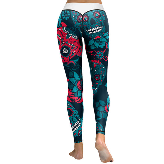 Sports Leggings Yoga Pants Blue Sugar Skull Women Fitness Rapper Leggings Tight Pants Gym Training Sports Running Legging