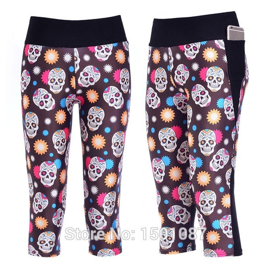 Slim Hip Women Mid-Calf Leggings Sexy Skull Digital Print Fitness Yoga Gym Cropped Trousers High Elastic Breathable Girls Capris