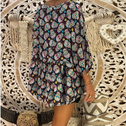 Sexy Top Women Blouse Womens 3/4 Sleeve Skull Print